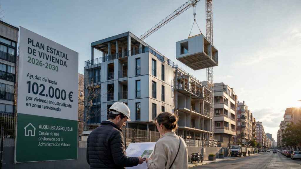 El Plan Estatal de Vivienda 2026-2030 incorpora ayudas de hasta 102.000 euros por vivienda industrializada en zonas tensionadas, impulsa el alquiler asequible, moviliza vivienda vacía y refuerza el acceso de jóvenes y hogares vulnerables a soluciones habitacionales.